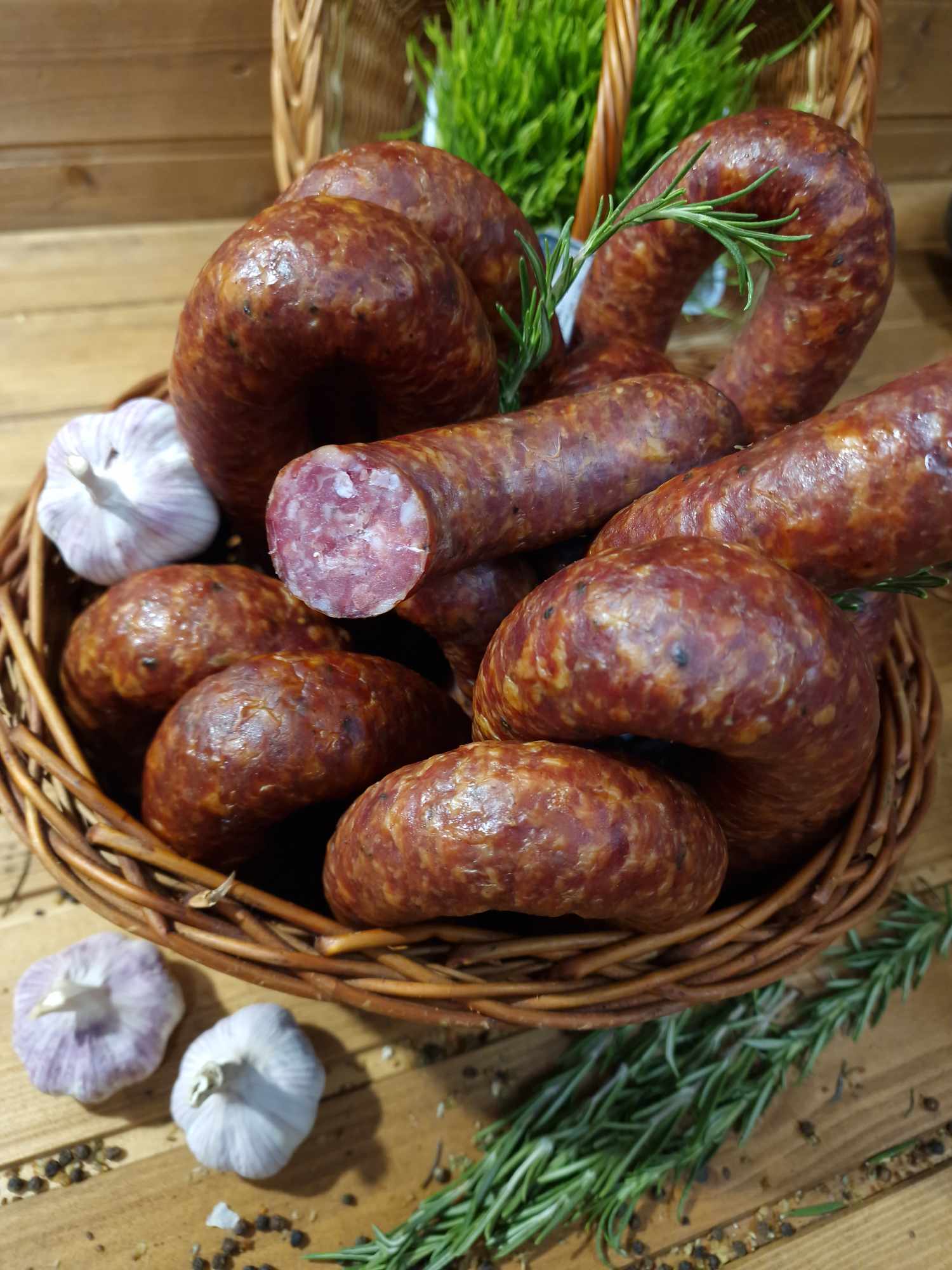 Kielbasa swojska ,miekka,doprawiona naturalnym czosnkiem, wędzona na zimno, dymem olchowym. Poczujesz się jak u Babci!